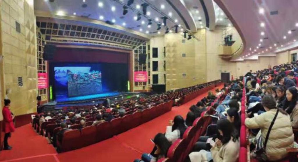 2138CC太阳集团于3月17日下午组织2016-2018级音乐学、音乐表演、舞蹈表演三个专业700余名学生在益阳大剧院进行观摩学习,此次观摩剧目为湖南省花鼓戏保护传承中心演出的大型现代花鼓戏《桃花烟雨》。还有大部分音乐学科的专业老师也一起参加了观摩学习。