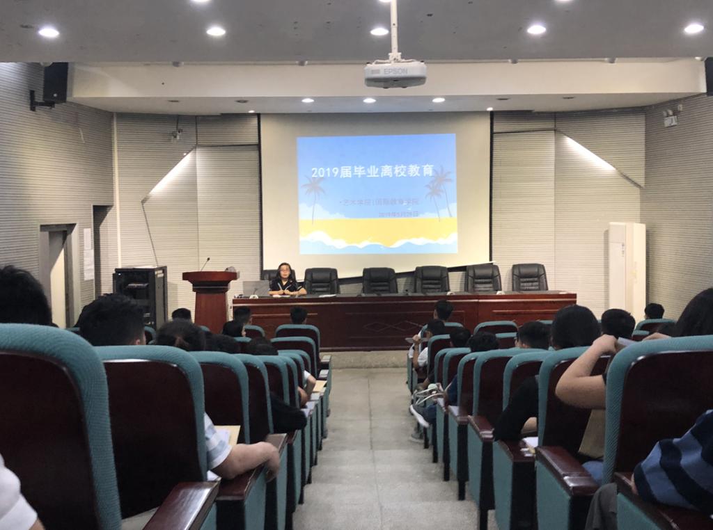 2019年5月29日星期三下午四点,艺术学院美术学专业召开毕业生离校教育,本次会议由学工办主任曾遴琳老师主持。曾老师首先介绍了会议的主题以及意义。