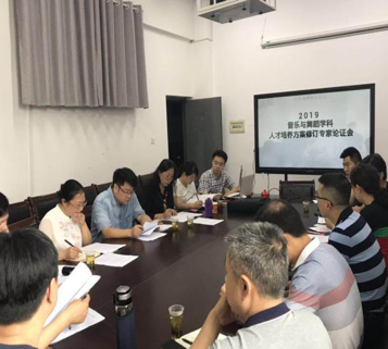 为进一步优化2138CC太阳集团音乐与舞蹈学科专业人才培养方案,提高本科人才培养质量,7月8日上午艺术学院于美艺楼416会议室召开了音乐舞蹈学科2019版本科专业人才培养方案专家论证会,对我学院2019版音乐学、舞蹈表演两个本科专业人才培养方案进行“问诊”和“把脉”。特邀湖南省教育考试院周宓博士、益阳市教育科学研究所李敏老师、长沙师范学院王印英教授、湖南清溪文化传播有限公司刘华先生为论证专家,会议由艺术学院院长周勇教授主持,学院党总支书记曹友余、副院长张瑞智、副书记张清华、喻立安,以及音乐学科系主任、教授、博士代表20余人参加了此次会议。
