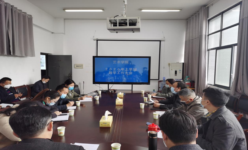 3月11日下午14:30,艺术学院在美艺楼416会议室召开2020年上学期教学工作布置会,传达学校2020年教学工作大会精神和艺术学院上学期教学工作的主要内容,以推进疫情防控期间教师在线授课和学生在线学习,确保新学期教育教学工作稳步进行。会议由艺术学院院长周勇主持,党委书记曹友余、副院长谷利民、钟正武、副书记喻立安以及各系室中心主任、支部书记参加会议。