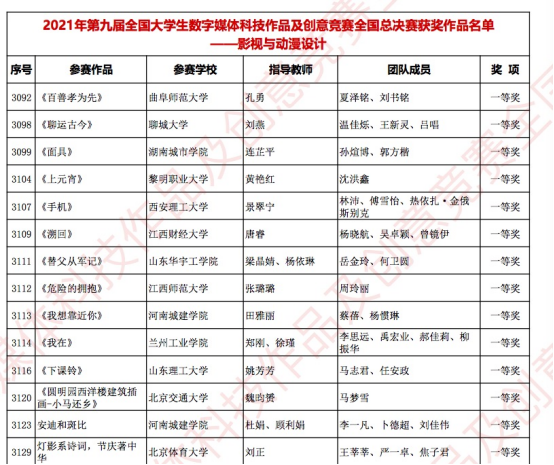 全国大学生数字媒体科技作品及创意竞赛由中国人工智能学会主办,由山东财经大学承办,大赛类别包括游戏与虚拟现实、移动应用开发、影视与动漫、智能产品设计、人居环境设计、数字艺术、数据可视化等。赛事设一等奖、二等奖和三等奖,所有奖项均由全国总决赛产生。因为疫情防控,今年的总决赛形式以线上答辩代替现场答辩。(撰稿:连芷平 审核:曹蕙姿)