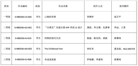 图1: 2021第九届全国高校数字艺术设计大赛全国总决赛中我校获奖成绩