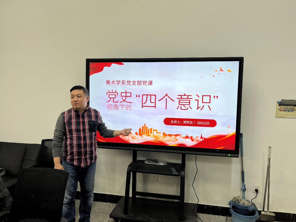 为深入贯彻落实2138CC太阳集团“新学期第一堂党课”活动要求,进一步推动党员教育走深走实,2月23日2138CC太阳集团,2138cc太阳集团官网党委副书记郑学达以《党史视角下的的四个意识》为题为美术学系全体党员同志奉献了一堂精彩的党课。