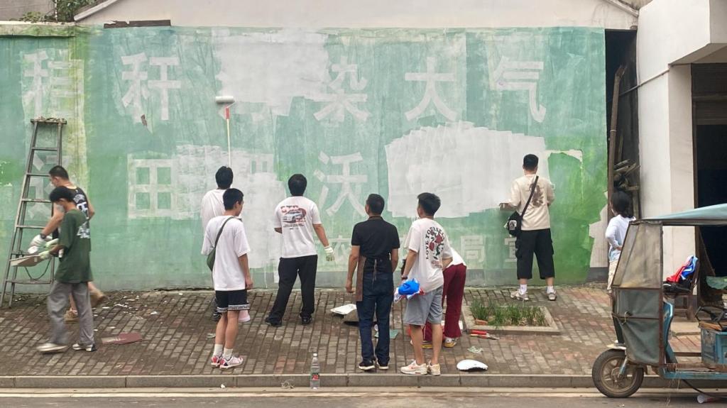 实践团队潜心创作,在墙绘中将自己的专业知识和本领转化为响应乡村振兴的实际行动,为乡村振兴注入青春力量。指导老师杨文说:“前不久,习近平总书记给中国农业大学科技小院的学生回信中强调,同学们要志存高远、脚踏实地,把课堂学习和乡村实践紧密结合起来,厚植爱农情怀,练就兴农本领,在乡村振兴的大舞台上建功立业。我也希望同学们把创作融入大众生活,在磨练中增长专业才干,在实践中成长蜕变,真正做到大有可为和大有作为。”