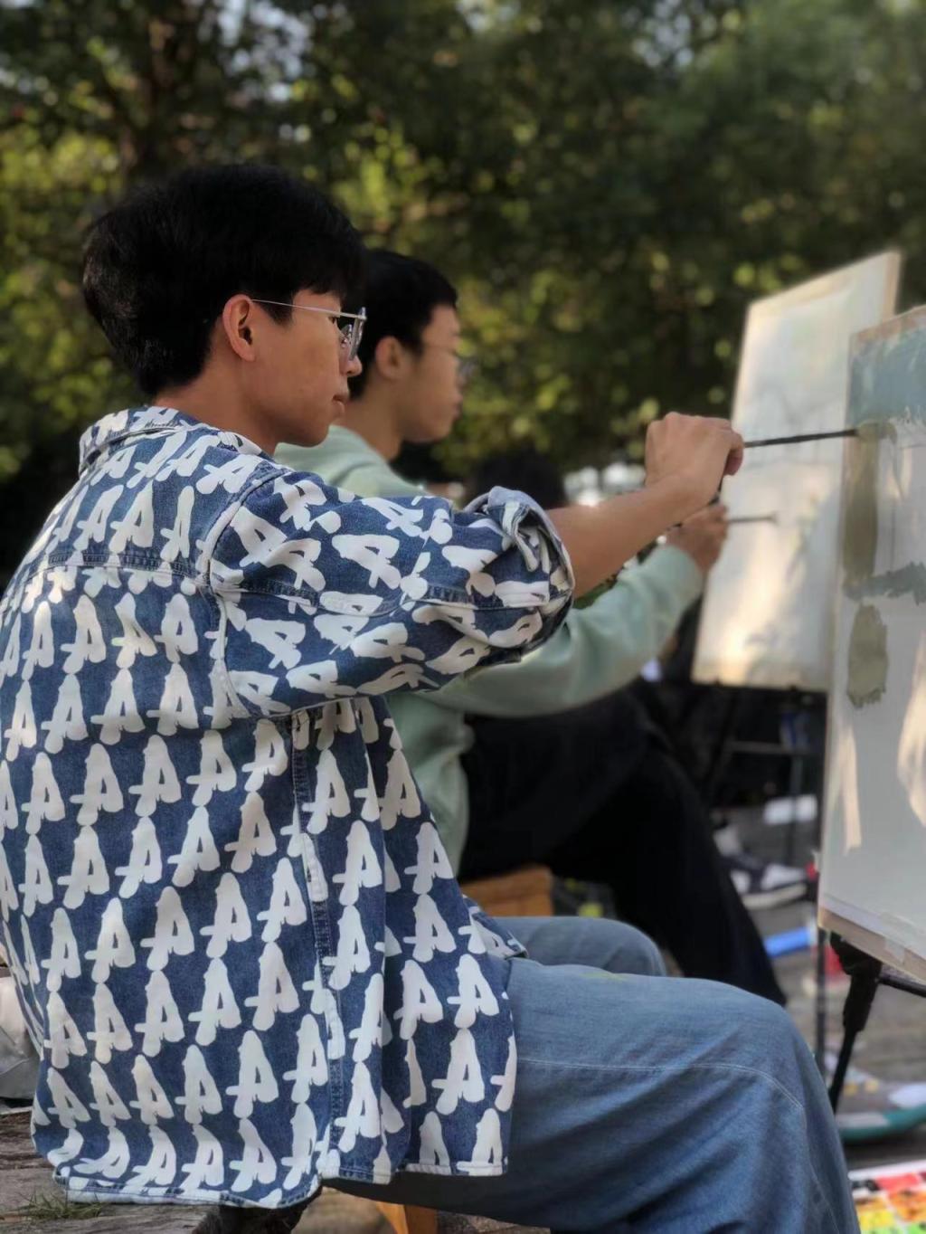 第一期“彩绘城院,筑梦青春”活动在篮球场展开,第二期活动在美艺楼前坪广场举行。大家结合自身专业特点感受沉浸式绘画给予人的快乐和收获成果时的成就感。活动过程中,有的同学用石英砂创作了肌理画,有的绘制了美丽的风景画,有的创作了抽象的装饰画。