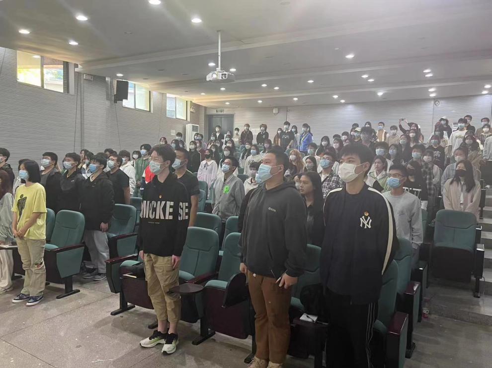 观会过程中,同学们跟随开幕式的进程进行了齐唱国歌和默哀环节。