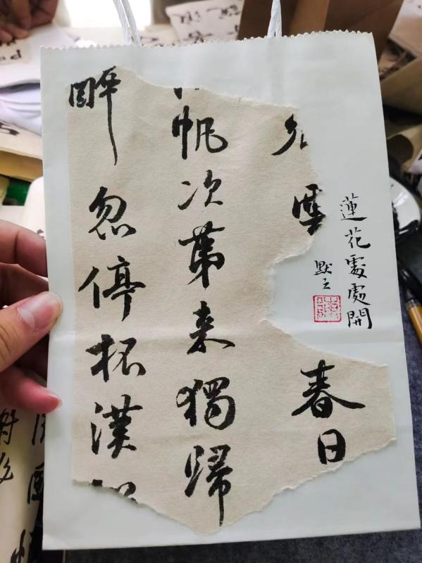 此外,活动还邀请了书法老师进行点评和指导,为同学们提供了宝贵的建议和改进方向。老师对同学们的创意和作品给予了高度评价,认为这些书法文创产品不仅具有实用性,更富有文化内涵和艺术价值。