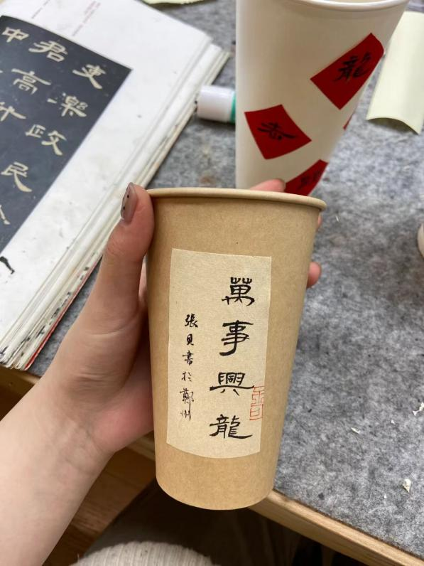 活动中,社团成员们纷纷发挥创意,将书法元素融入笔记本、书签、茶杯等日常用品的设计中,不仅保留了书法的传统韵味,又赋予了这些产品新的生命和活力。每一件作品都凝聚着成员们的心血和智慧,展现了他们对书法文化的热爱和传承。