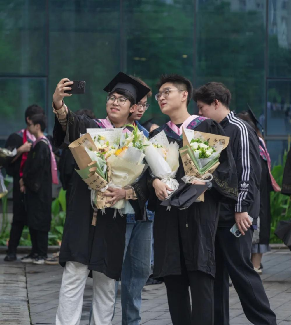 在活动现场,同学们在精心挑选的明信片上写下祝福的话语,并互相交换自己手中的花束,传递着同窗情谊。这些花束承载着深厚的友谊,成为了毕业生们离别之际最珍贵的礼物,将伴随他们奔赴五湖四海,见证彼此的青春岁月。