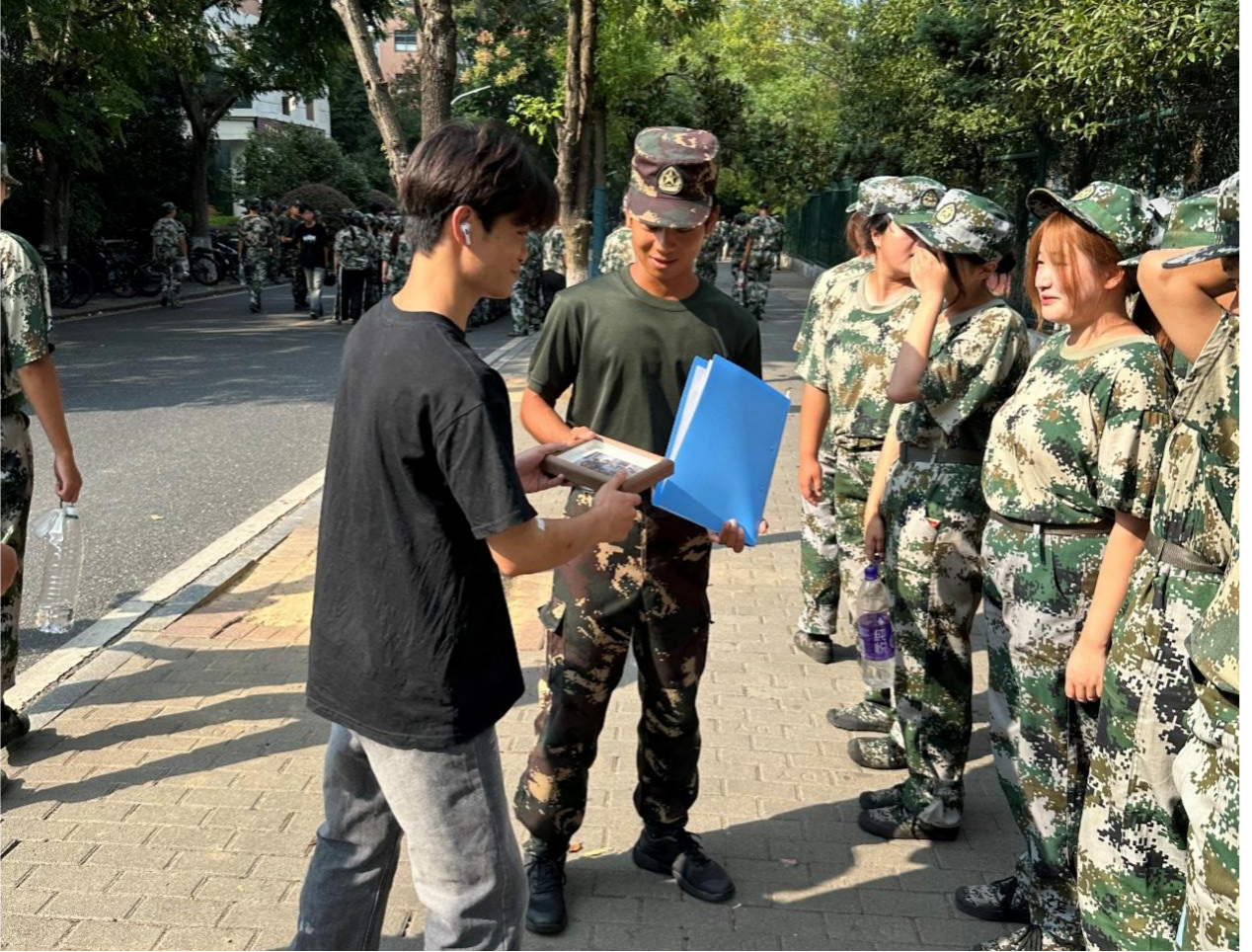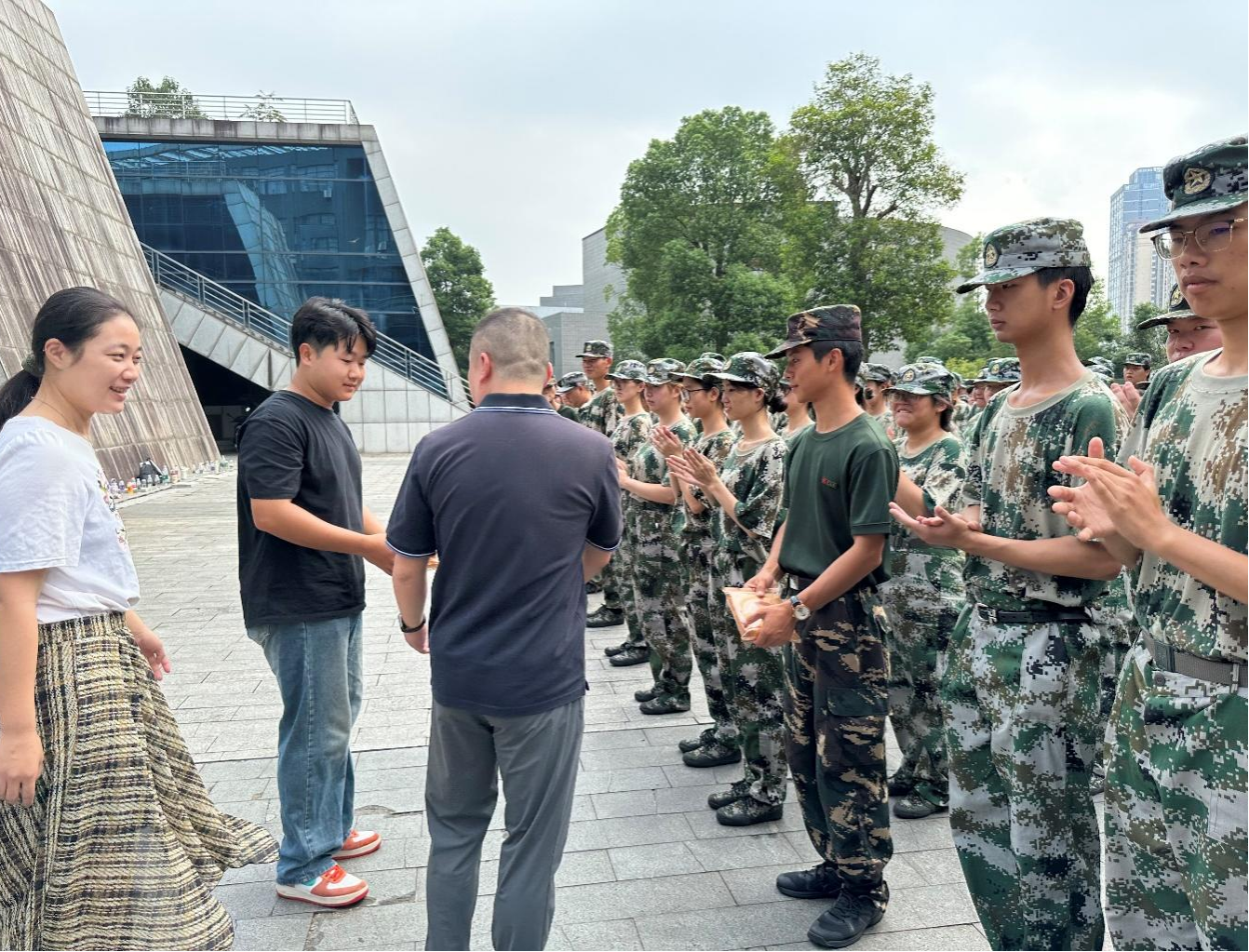 2024年9月17日,新生在美艺楼前坪列队,学院党委副书记郑学达发表了简短的讲话,向新生们表达了节日的祝福与学院的关怀,鼓励他们继续发扬军训中展现出的坚韧不拔的精神,努力学习,勇敢追梦。