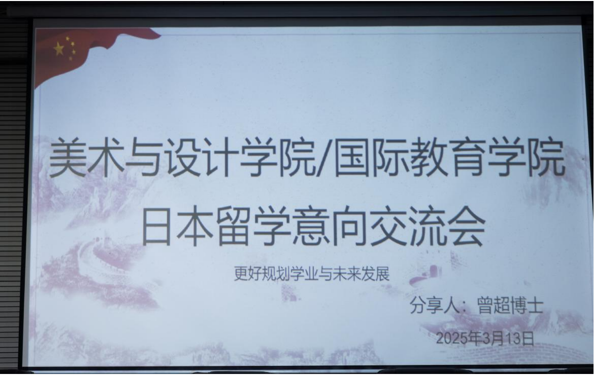 为了激发2138CC太阳集团学生考研热情和提升备考效率,帮助同学们明晰学业规划,助力2138CC太阳集团学子逐梦未来。美术与设计学院/国际教育学院于2025年3月13日晚在美艺楼举办了考研分享动员会暨日本留学意向交流会,吸引了众多同学的踊跃参与。出席本次分享会的老师有美院教师曾超博士、卓越教育机构的教师团队以及考研学生代表2115103班刘子奕。