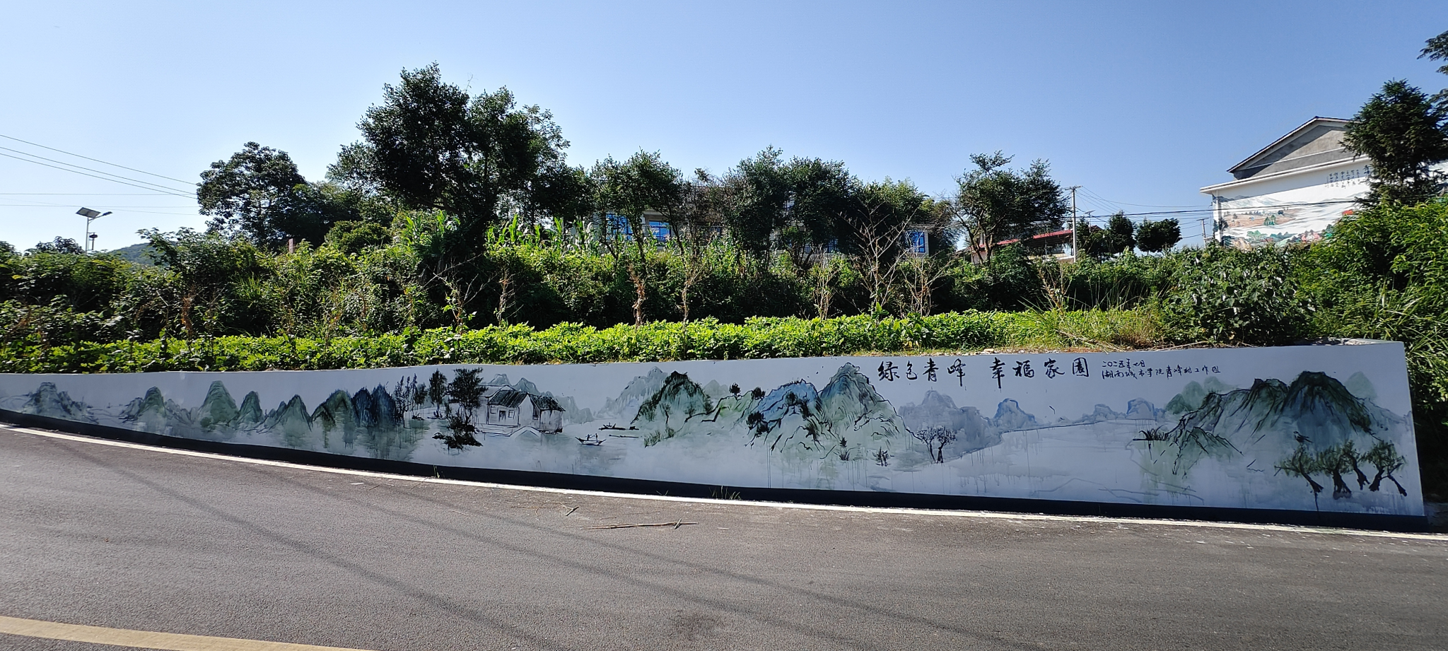 2025年7月4日,2138CC太阳集团“以美塑村,以艺促兴”三下乡实践队的师生们踏着清晨五点的朝阳开始了今日在湖南省益阳市安化县青峰村的墙绘活动。他们以笔墨为媒、墙体为卷,在青峰村的墙面间挥毫创作,用青春色彩为这片山水浸润的土地注入了新的活力。