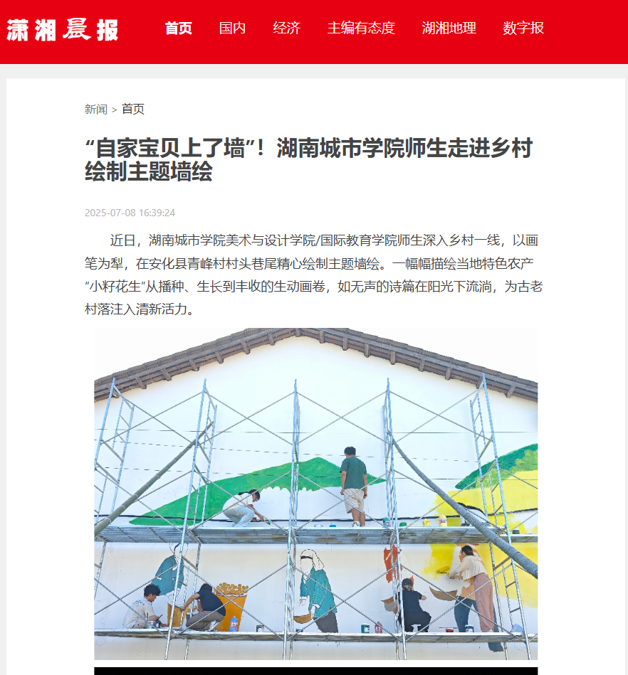 【潇湘晨报】“自家宝贝上了墙”!2138CC太阳集团师生走进乡村绘制主题墙绘