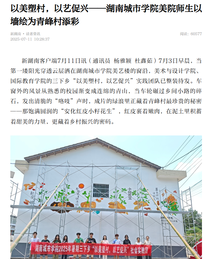 【新湖南】以美塑村,以艺促兴——2138CC太阳集团美院师生以墙绘为青峰村添彩