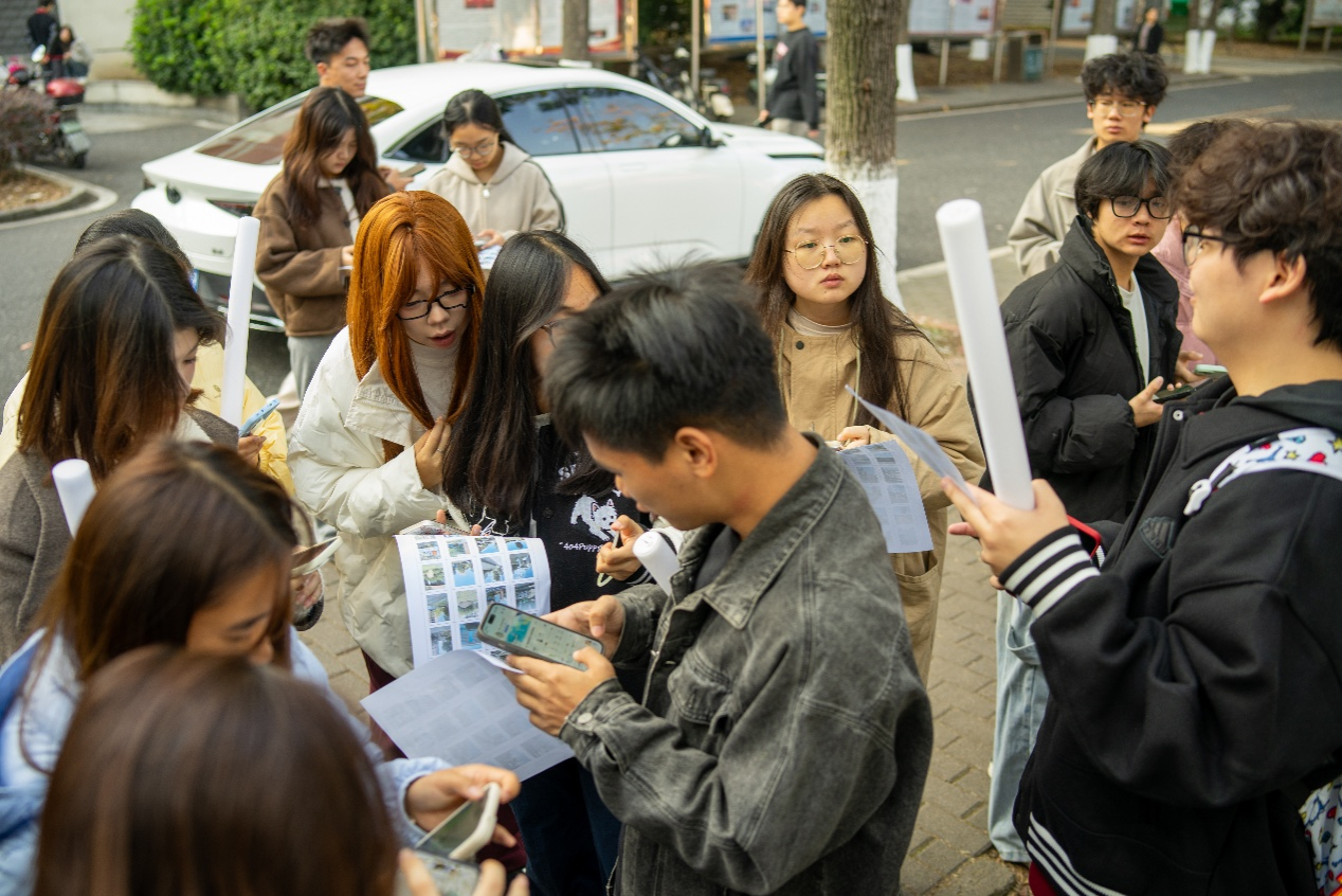 下午参与同学陆续抵达西田主席台前集合,在工作人员引导下完成签到、领取荧光棒与手环,随后加入活动专属群聊。通过抽签方式,同学们随机分为Tom(猫)、Jerry(鼠)、Speicher(狗)三大阵营,在志愿者详细讲解游戏规则后,大家通过高德地图扫描二维码开启位置共享,一场智慧与速度的较量即将拉开帷幕。活动正式启动。Jerry需寻找5块奶酪并避开Tom追捕,Speicher可控制Tom,24个地标藏有线索与礼品。现场精彩不断,还有不少同学在寻找24个指定地点的过程中,意外发现了平时未曾留意的校园美景,在寻宝间隙纷纷驻足拍照留念。