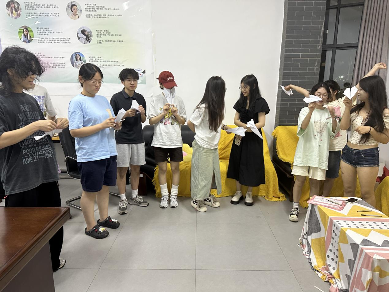 活动分为两个环节,第一个环节是小游戏“信任之旅”有效促进了同学们的沟通技巧,让大家学会如何更好的表达自己的信任和需求,学会如何解读他人的信任。第二个则是“放飞纸飞机”小游戏,大家纷纷在纸飞机上写下自己对生命的感悟与展望,满心欢喜地叠成纸飞机放飞。