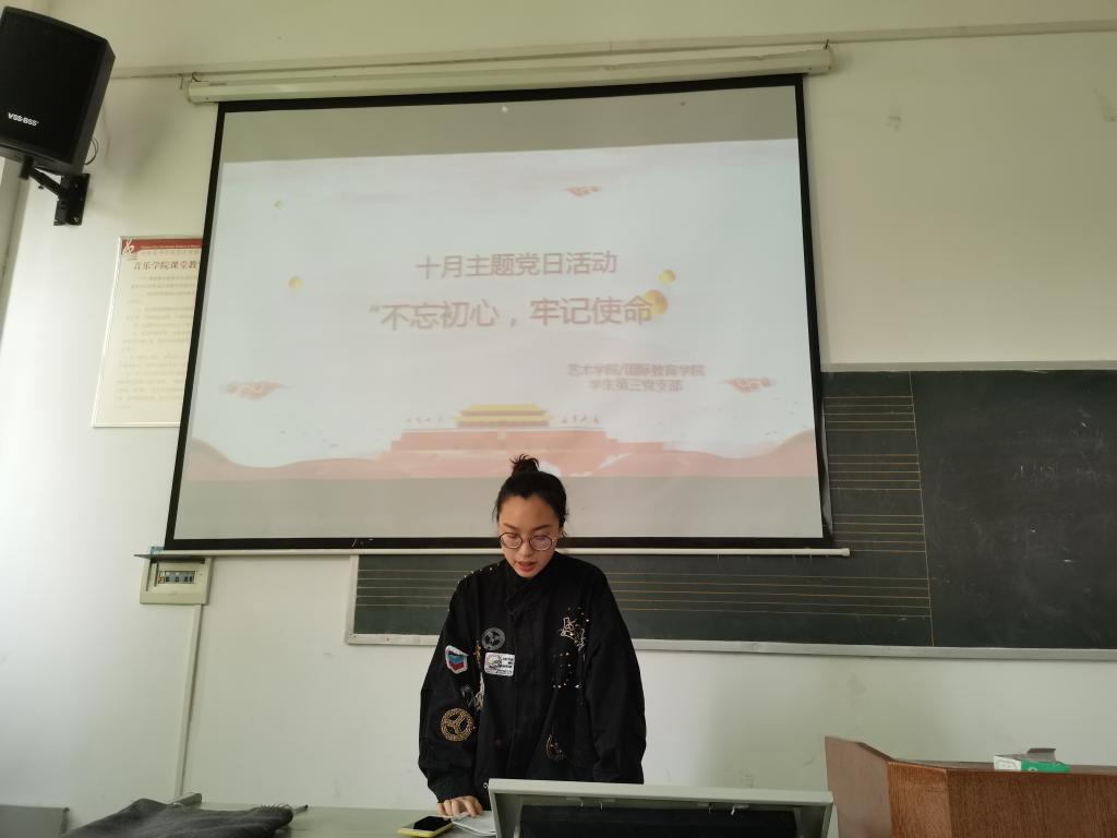 为进一步提升全体党员对习近平新时代特色社会主义思想的认识与体会,强化党员“四个意识”,2019年10月10日,艺术学院/国际教育学院学生第三党支部组织开展党日活动。本次活动,共有1名党员、3名预备党员、22名积极分子参加。