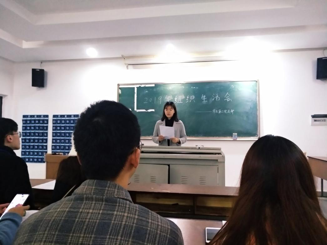 为深入贯彻学习习近平新时代中国特色社会主义思想;贯彻学习“不忘初心,牢记使命”精神,深入开展党员政治教育;自觉履职践诺、担当作为、真抓实干、遵规守纪,争做“四讲四有”、“四个合格”的优秀党员,提升党支部组织能力。根据学院党委统一安排部署,学生第二党支部全体党员于2019年12月13日下午在美艺楼106教室召开了专题组织生活会和民主评议大会,本次会议由学生第二党支部副书记郑铭暄主持,共有28名党员同志参加了此次会议。