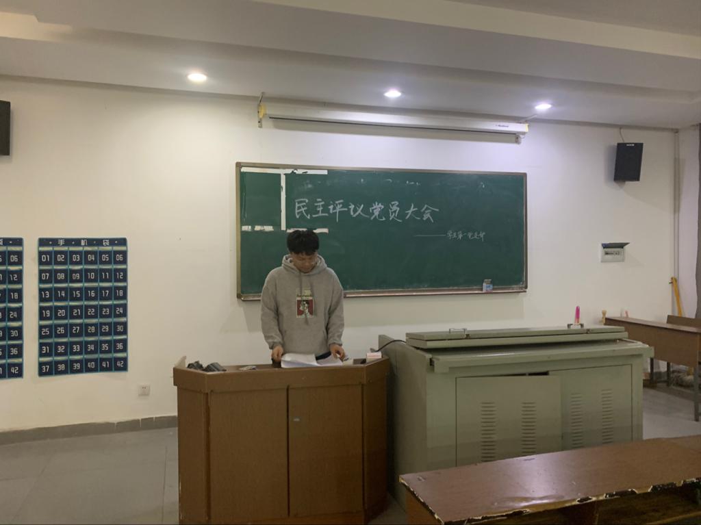 为全面贯彻落实从严治党的工作要求,进一步加强党员队伍建设,2019年12月12日下午,学生第一党支部于美艺楼106教室召开党支部专题组织生活会及民主评议大会,本次会议由委员陈扬灿主持会议,22名党员同志参加了会议。