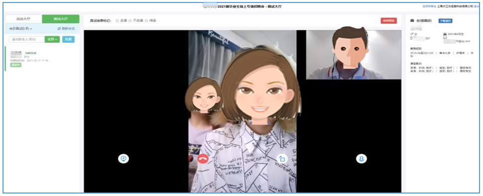 接收到单位的视频面试的通知后,与单位HR进行一对一视频面试。