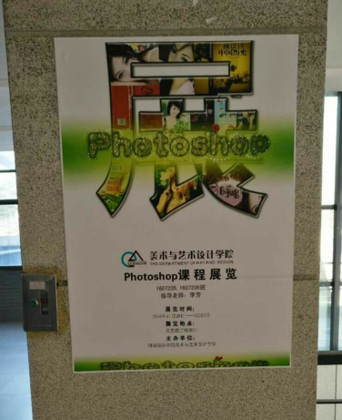 2016年11月28日,视觉传达专业2016级1607205.206班的photoshop课程结课展在美艺楼三楼过厅举办,展期1周。