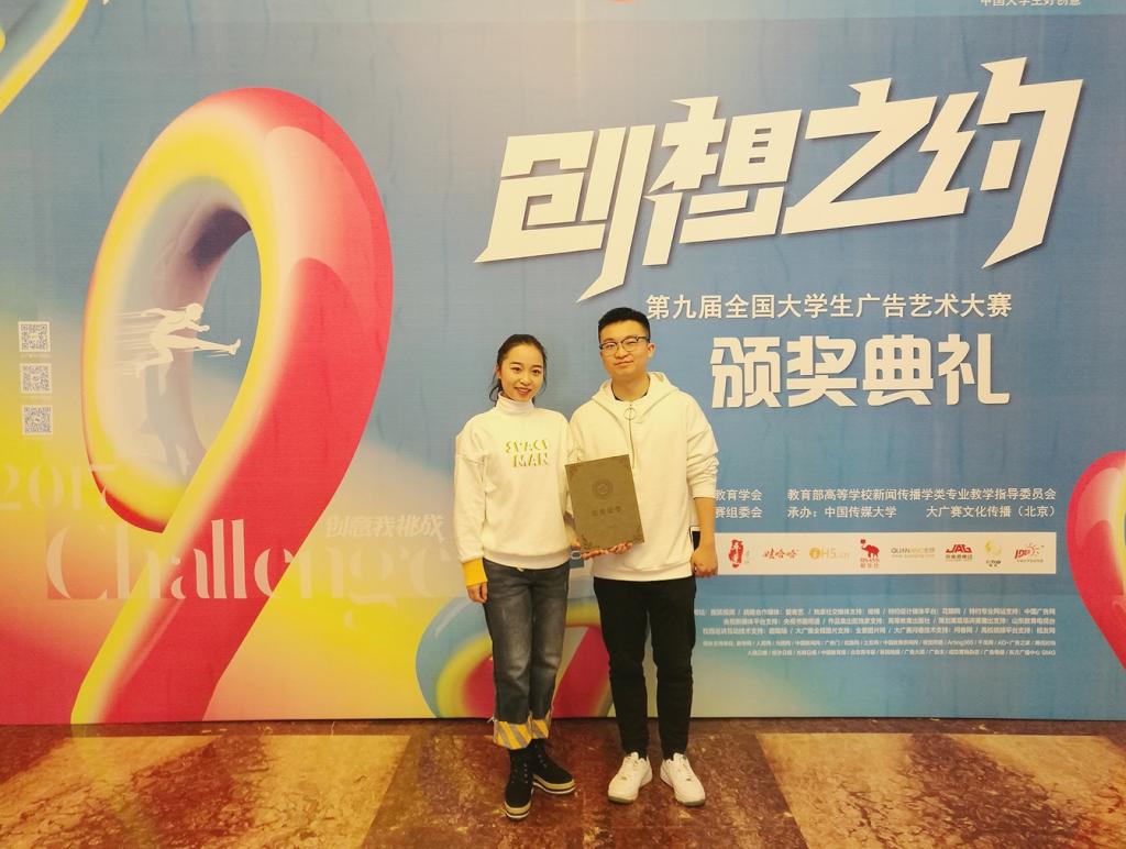 2017年11月24日,2138CC太阳集团3+1合作办学2名同学前往北京,参加在全国政协礼堂举办的第九届全国大学生广告艺术大赛颁奖典礼暨第十届全国大学生广告艺术大赛启动仪式。全国千名嘉宾代表、获奖师生齐聚北京,共襄盛举。出席颁奖典礼的有:教育部门相关领导、主办单位的领导、支持单位领导、参赛高校的领导、大广赛组委会成员、评委代表、赛区负责人、18家媒体朋友和900多位获奖师生代表。
