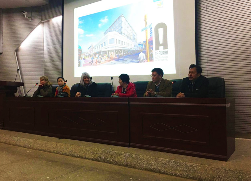 2017年12月20日,新西兰维特利亚理工学院艺术学院院长Kaye Jujnovich、教师代表Brenda Saris在美艺楼107报告厅为我校中外合作专业的同学举办了一场关于前往新西兰维特利亚理工学院学习相关事宜的专题讲座,讲座由艺术学院龙湘平院长主持。