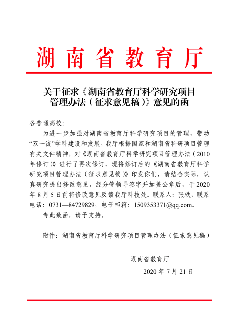 关于征求《湖南省教育厅科学研究项目管理办法(征求意见稿)》意见的函.pdf