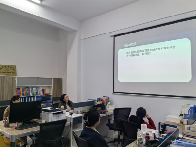 2024年4月11日下午,中外合作办学教研室开展了以磨课和业务学习为主题的教研室活动,磨课活动以《雅思基础(说写)》写作部分课程思政案例为主题,何俊老师首先介绍小作文类型、结构、范例和记分等情况,引出学生对小作文写作的畏惧。通过带领学生学习和总结相关范文内容,让学生不畏难,了解难点都有解决的窍门,从而达到课程思政育人的目的。之后教研室成员一起探讨了写作中不同教学内容的课程思政点,有助于本课程及其他课程思政教学。