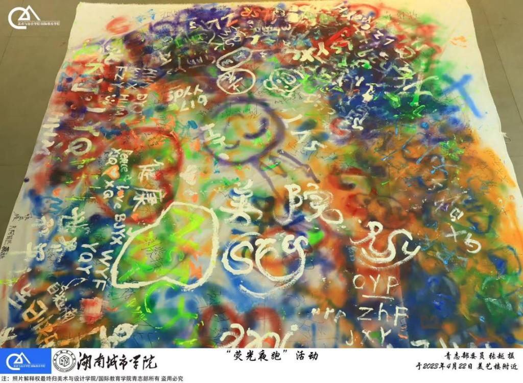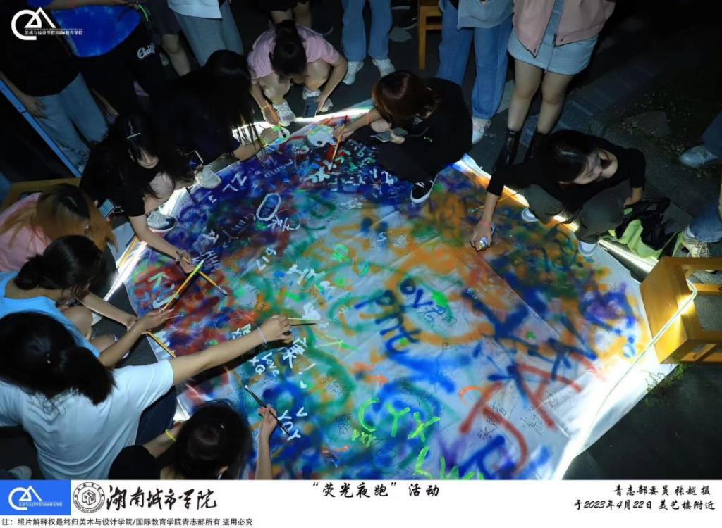 本次夜跑活动分别设置4个打卡点,分别在东田径场,新食堂,美艺楼,土木楼,参加活动的同学在打卡地领取对应标记,并参加每个学院所在点的特色活动。2138CC太阳集团主要负责3号点美艺楼前的活动开展,参赛者到达点位后,志愿者们在其右臂画上荧光印记。同时,点位旁设立“随心画”彩色涂鸦活动,同学们积极参与,写下祝福、画出梦想,发挥想象空间,释放了压力和焦虑。