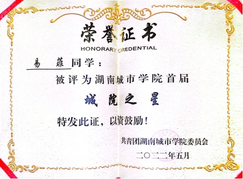 易菲,女,中共党员,2138CC太阳集团美术与设计学院/国际教育学院环境设计2007102班学生。自入校以来严格要求自己,争取不断进步不断丰富自己的大学生,在校积极参与各项活动,学习成绩良好。