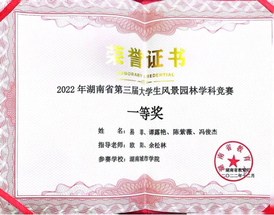 同时大学四年期间积极参加各类学科竞赛提升专业能力,在准备比赛的过程中向优秀的学长学姐学习,获得湖南省第三届风景园林学科竞赛一等奖、未来设计师湖南省赛区二等奖、大学生广告艺术大赛湖南省赛区二等奖、国青杯一等奖。作为一名生在红旗下,长在春风里的青年,应当始终坚持冲锋在前,将小她青春融入中华民族伟大复兴的建设当中,提高自身专业能力素养。