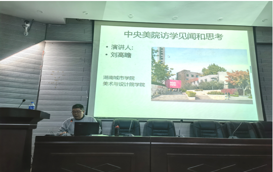 讲座中,刘高瞻副教授首先介绍了他本人在中央美术学院做访问学者期间的所见所闻,接着向在座的师生们详细讲述了中央美术学院校内的一些展览和学术讲座见闻,最后提出了对中央美术学院教学的学习以及给我们带来的思考。