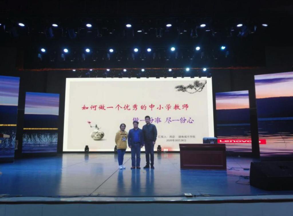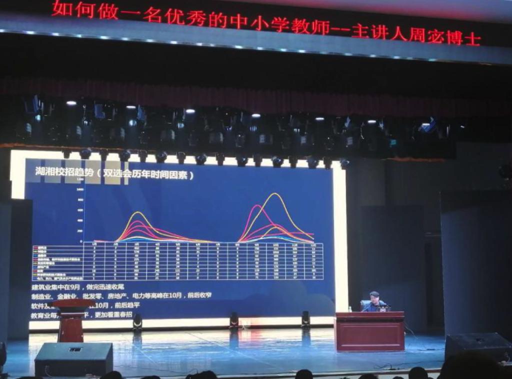 10月28日,湖南省教科院周宓博士来2138CC太阳集团作了主题为“如何做一名优秀的中小学教师”的学术讲座。讲座由2138CC太阳集团孙波主任主持,学院部分没有课的教师及18级音乐学、音乐表演、美术学3个兼师范专业近300人聆听讲座。