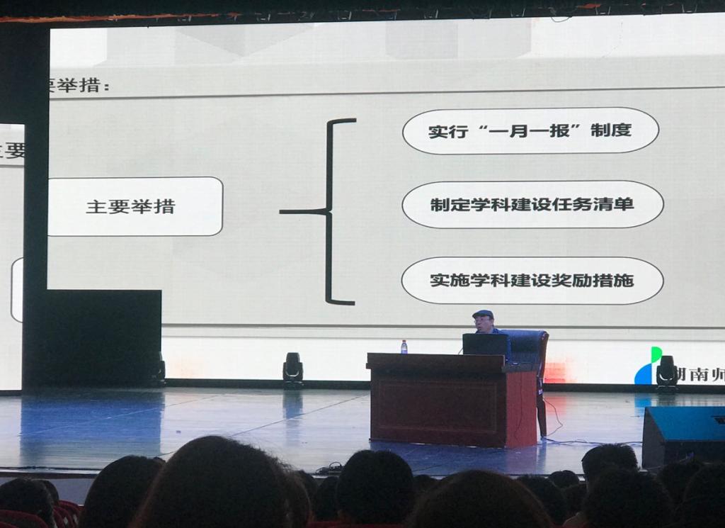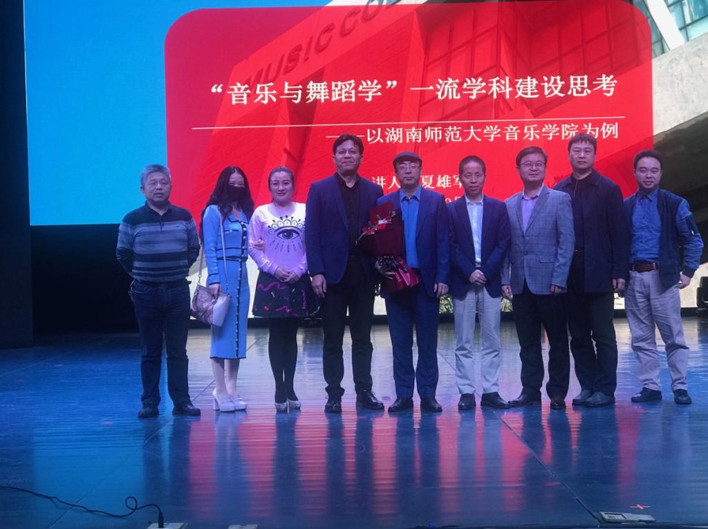 讲座主要以湖南师范大学音乐与舞蹈学一流本科建设为例,从学科建设意识、人才培养、师资队伍、科学研究、音乐思政文化建设、服务社会等六个方面展开论述。夏雄军教授首先从“中国高校以‘学术创新’与‘知识传承’增进人类福祉,当前阶段,大学需要准确把握时代发展大势,以高度的责任感,不断增强一流学科意识,在危机中育新机,于变局中开新局,以更加追求卓越的精神全力推进‘一流学科’建设”入手,谈到高校育人,必须要符合习近平总书记在全国高校思想政治工作会议上的讲话,要符合我国高等教育发展方向的“四个服务”明确要求