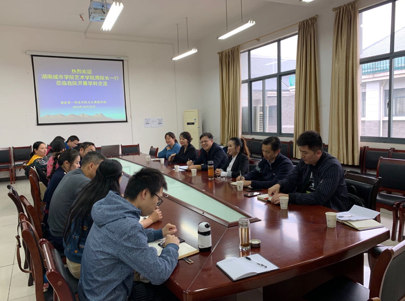 10月25日下午,周勇一行在第一师范学院音乐与舞蹈学院与张应华院长及相关系室负责人举行座谈。双方领导介绍了各自学院一流专业建设基本情况,与会人员围绕音乐学、舞蹈表演专业本科教学改革模式及一流专业建设、在线开放课程建设、学科建设与发展、教学管理信息化建设、实验教学管理及平台基地建设等方面进行了深入交流。双方表示将进一步促进交流合作,推动学科专业建设共同发展。
