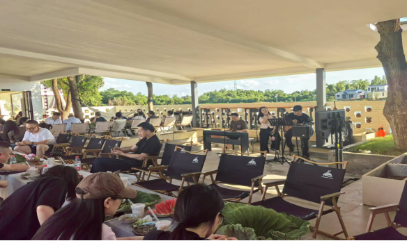 接着,我们前往菱屿·小筑民宿小憩,品尝了夏日荷莲席,莲子、西瓜、绿豆羹、银耳莲子汤正解酷暑,老师们自告奋勇,一展歌喉。美食、音乐,充满了松弛和惬意。随后就餐返程,大家一路欢声笑语,流连忘返。